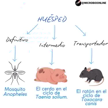 Huésped intermediario: Alberga las fases larvarias o permite una reproducción asexual del parásito.