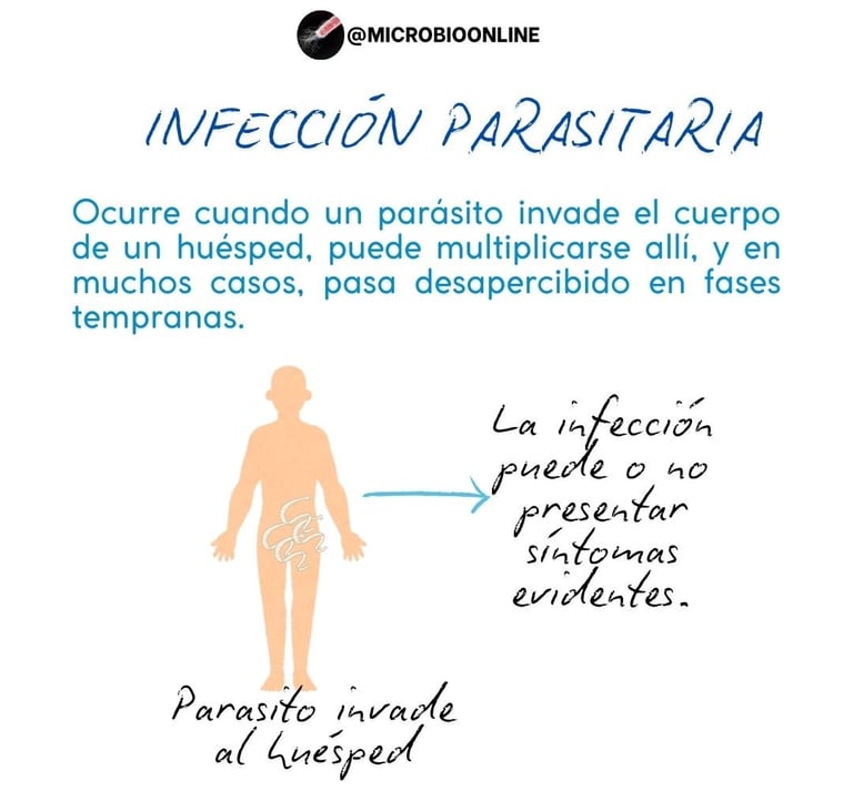 Una infección parasitaria ocurre cuando un parásito invade el cuerpo de un huésped, puede multiplicarse allí, y en muchos casos, pasa desapercibido en fases tempranas.