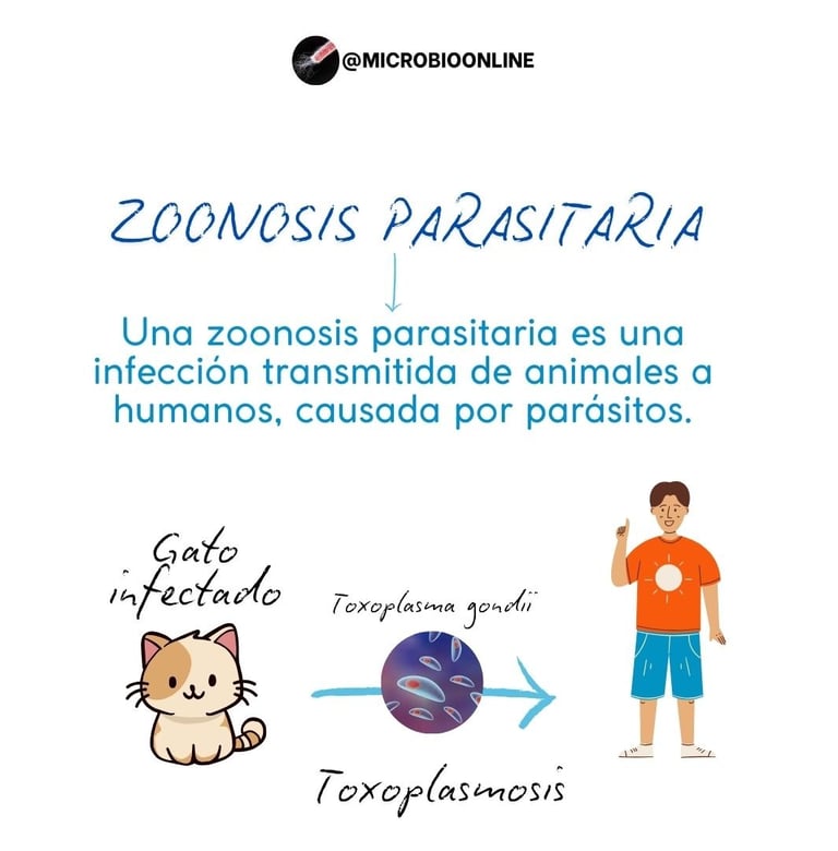 Un ejemplo clásico es la toxoplasmosis, transmitida a las personas por contacto con gatos infectados.
