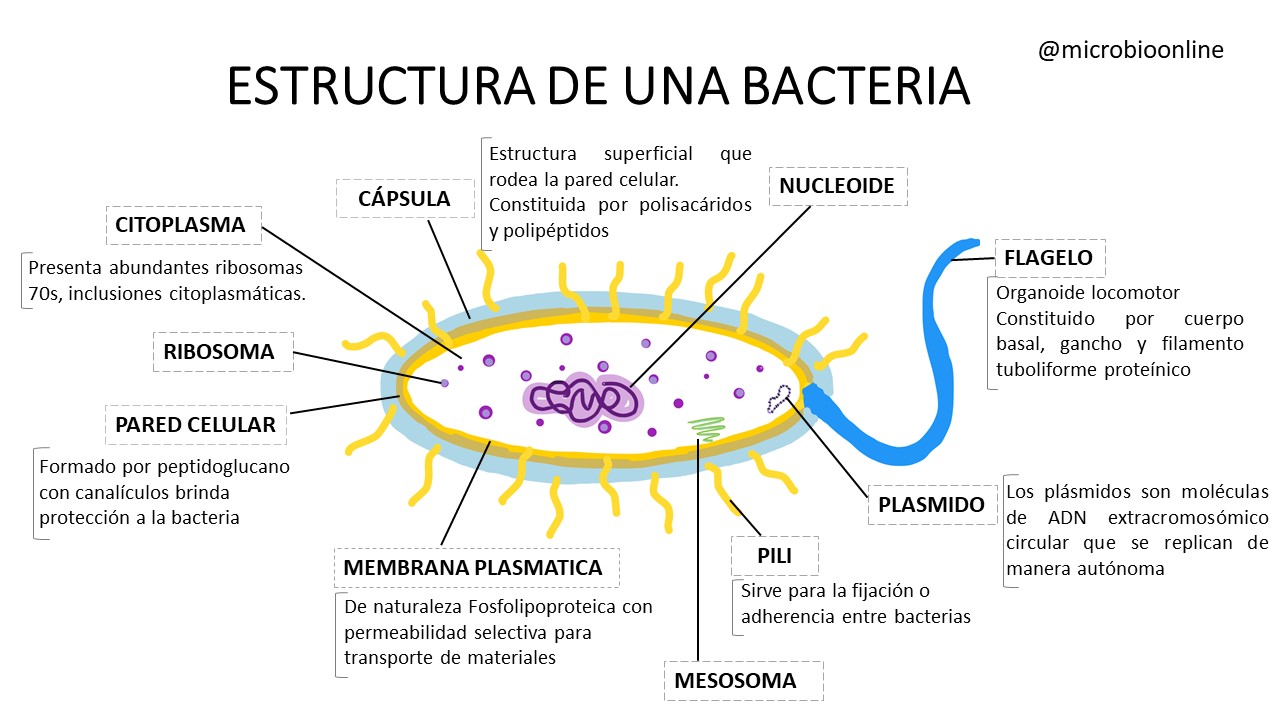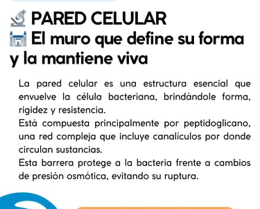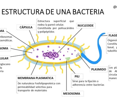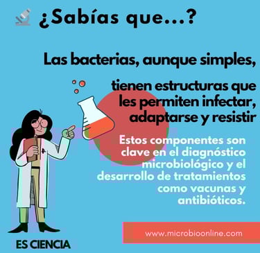 🧬Las bacterias presentan una organización celular sencilla pero altamente eficiente, cuyas estructuras desempeñan funciones clave en su supervivencia, patogenicidad y adaptación al entorno. Muchos de estos componentes están directamente involucrados en la interacción con el hospedero, facilitando la adherencia a tejidos, la evasión del sistema inmunológico o la inducción de respuestas inflamatorias.