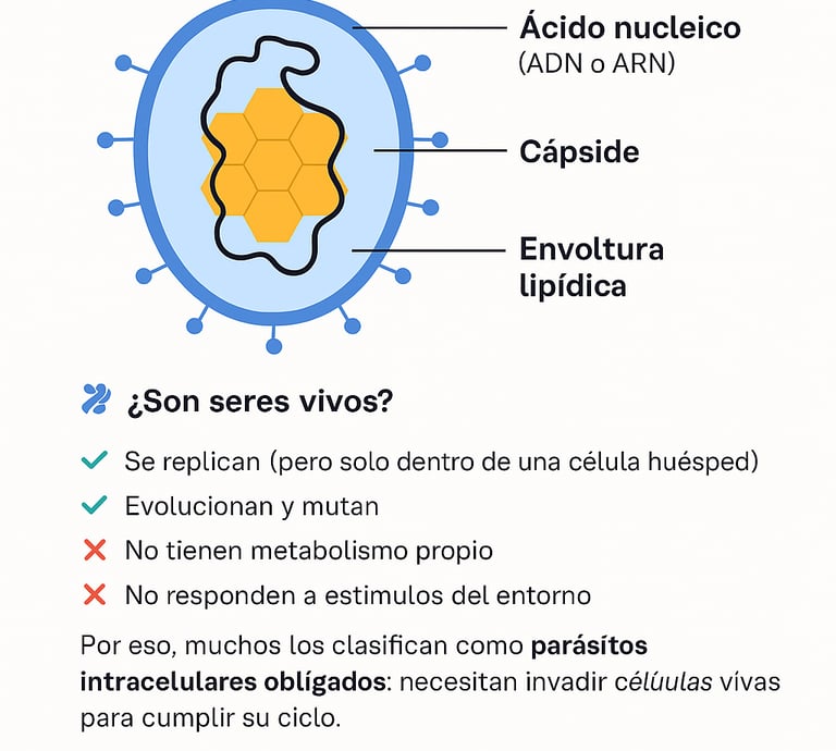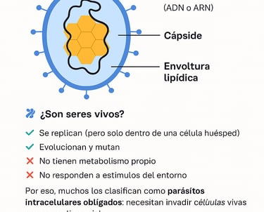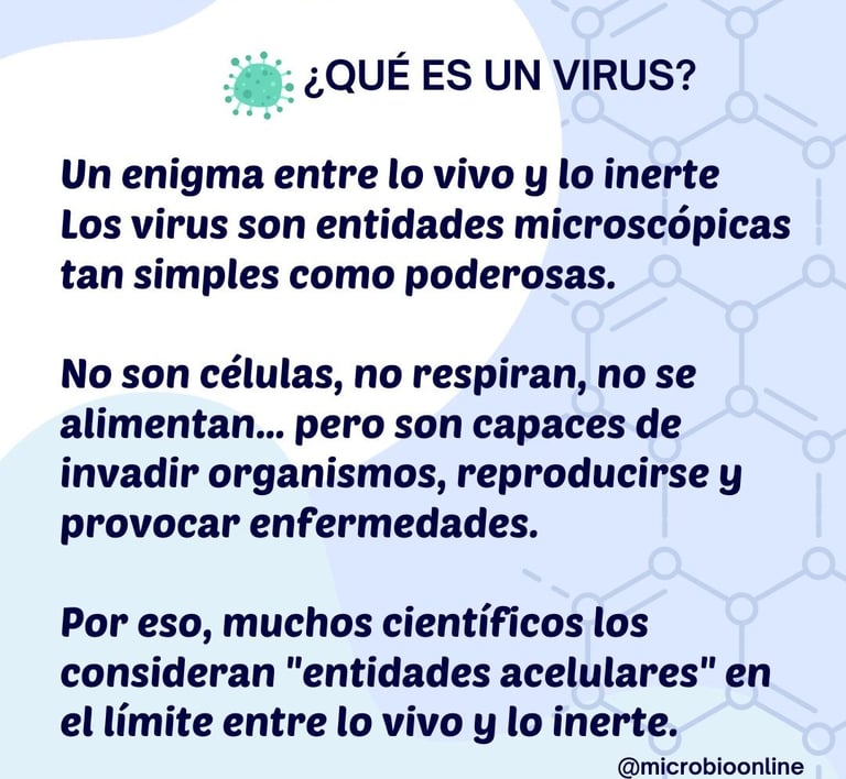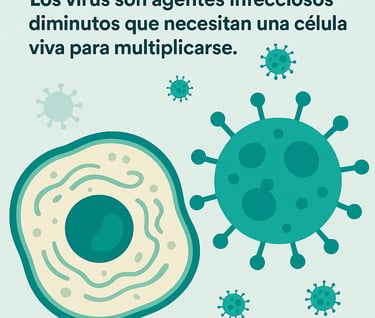 Los virus son agentes infecciosos de tamaño formados por una única molécula de material genético, ya sea ADN o ARN.extremadamente reducido (entre 20 y 300 nanómetros), Presentan una estructura sencilla y se reproducen mediante un mecanismo específico que solo ocurre dentro de células vivas.