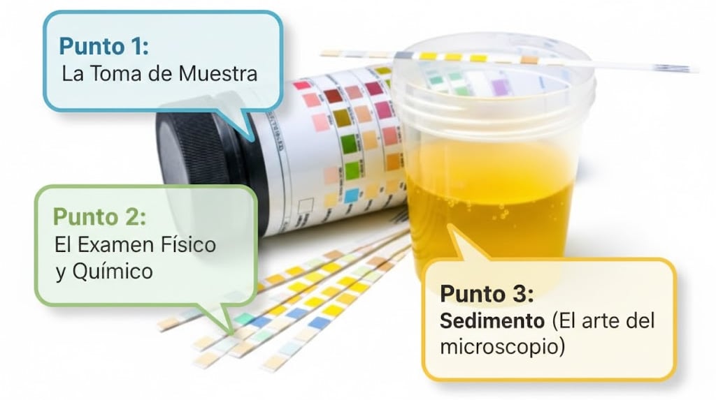 La muestra ideal: Es la primera orina de la mañana, ya que es la más concentrada y permite una mejor detección de elementos formes.